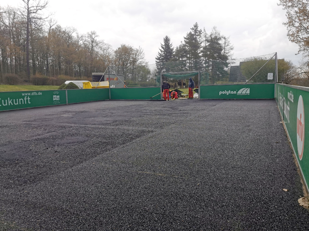Mit Freude erhielten wir die gute Nachricht, dass das Sportamt eine Sanierung unseres DFB Spielfeldes veranlasst hat. Die Arbeiten gingen diese Woche schon los und so können wir uns nächste Woche auf ein mit neuem Kunstrasen belegtes Kleinspielfeld freuen.